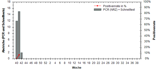 große Schwankungen der Positivenrate möglich. Beträgt die Anzahl der Proben 10 oder weniger, so wird die Positivenrate in den Diagrammen nicht dargestellt.