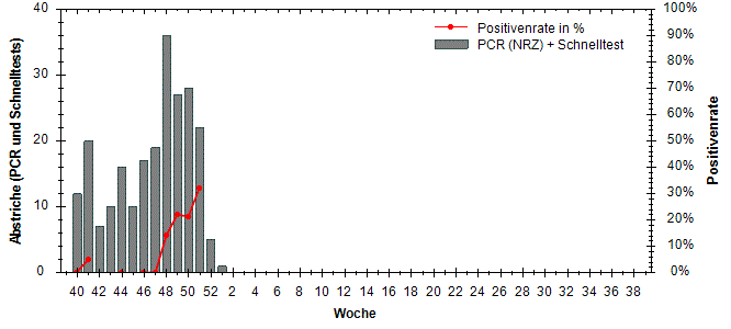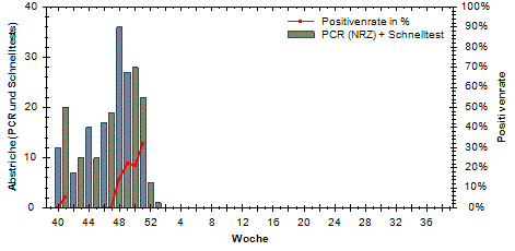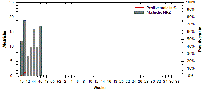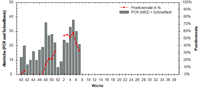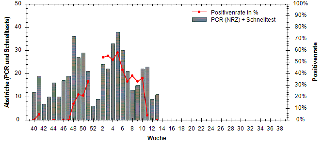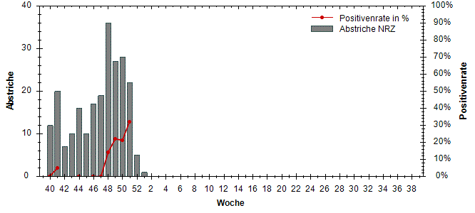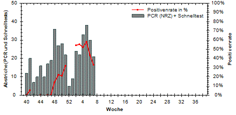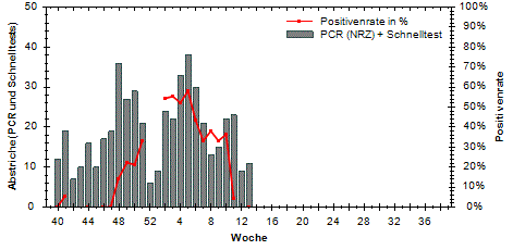 große Schwankungen der Positivenrate möglich. Beträgt die Anzahl der Proben 10 oder weniger, so wird die Positivenrate in den Diagrammen nicht dargestellt.