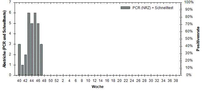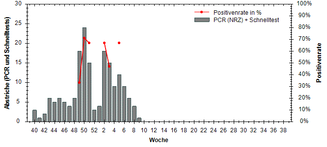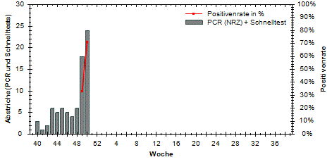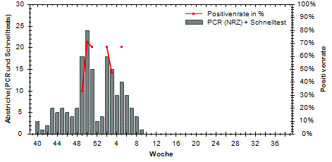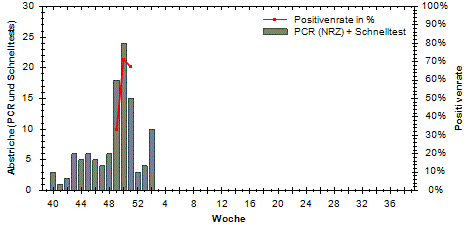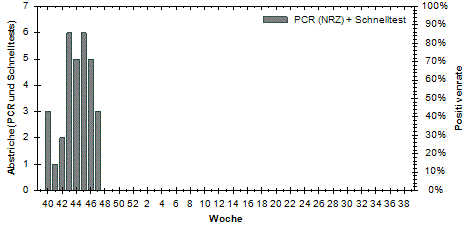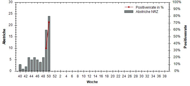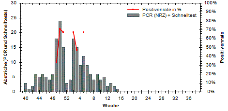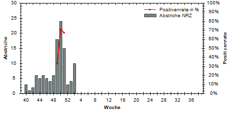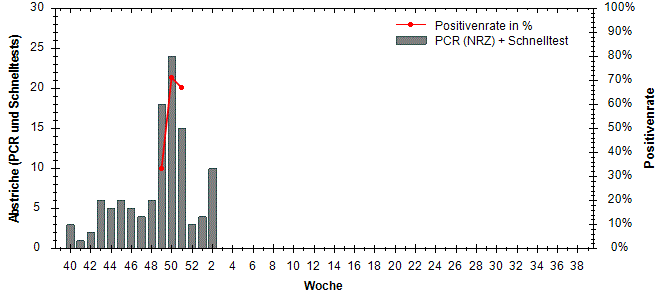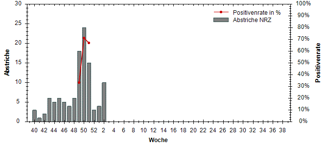 große Schwankungen der Positivenrate möglich. Beträgt die Anzahl der Proben 10 oder weniger, so wird die Positivenrate in den Diagrammen nicht dargestellt.